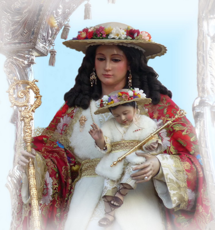 Durante la romería la Virgen aparece ataviada con atuendo de pastora en una carrozaza de plata tirada por bueyes y también portada a hombros por costaleros. Digno de destacar son la ofrenda de flores el ultimo día de novena, el camino y la entrada de la comitiva romera al recinto, así mismo la puja del “Clavel” reúne gran cantidad de personas; se trata de la subasta del ramo de flores que la Virgen ha portado durante toda la romería y que da opción a la Mayordomía del año siguiente.